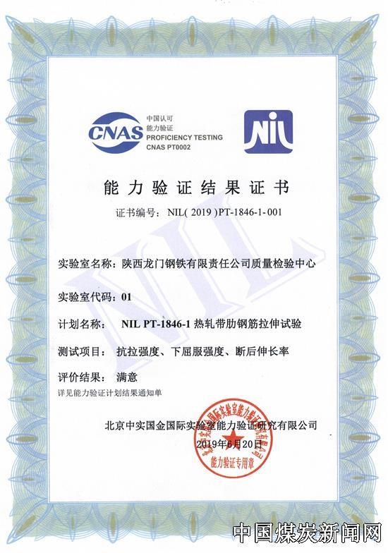 近日,龙钢公司收到四项国家质量检验能力验证结果“满意”证书,再次展示了公司质量检验管理水平和检测能力,有力促进了公司的高质量发展。 此次获得的四项“满意”证书分别为:“用火花源原子发射光谱法测定中低合金钢中化学成分(国际比对)”“煤工业分析(国际比对)”…
