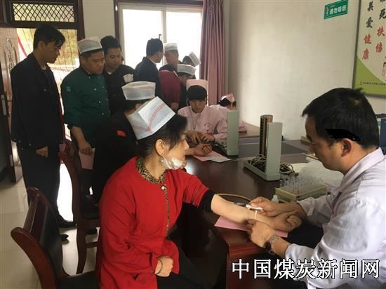 5月16日上午9点30分,建庄矿业公司医务所门口排起了队,物业部前来体检的厨师和服务员早早做好了准备。