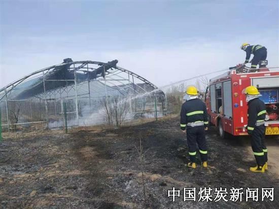 到达火灾现场后,指挥员通过侦查,发现是棚区大片的荒草着火,致使引燃大棚,赶到现场时周围荒草大部分已经燃尽,只有大棚上还有明火。指挥员当机立断安排部署阵地,选择合适的地理位置,根据现场情况迅速制定出灭火方案:首先用高炮对大棚顶部火势进行作业灭火,将顶棚火扑灭后,再组织指战员对周边彻底清理,随后指挥员让指战员连同现场群众共同用铁锹将地面冒烟的地方用土覆盖,防止复燃。经过近一个小时的紧张扑救,指挥员经过现场勘察确定已无复燃迹象后命令指战员整理装备返回。