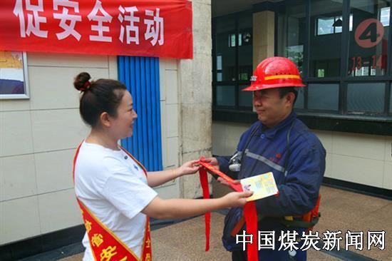 6月10日,陕煤铜川矿业公司陈家山煤矿工会女工委在井口开展“献爱心 促安全”活动,为奋战在井下一线的职工系上“一生平安”安全带。