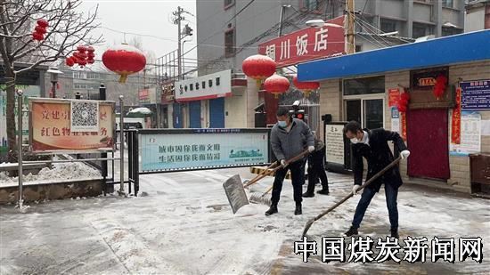 煤机管理中心组织党员、积极分子以及工作人员拿着铁锹、扫把,走进扫雪铲冰。为了让居民们行走方便,大家不辞辛苦、不怕严寒,将辖区内的主要出入口、人行道上的积雪寒冰清理得干干净净。在工作人员的带动下,小区居民、沿街商铺也纷纷拿上工具,加入到扫雪队伍中来,上下一心,共同扫雪。