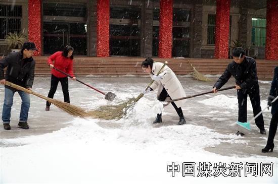 在清扫积雪中,天空虽不停地下着雪花,飘打在每个人的头上和脸上,但大家丝毫感觉不到凉意,他们热情高涨,不畏严寒,充分发挥团队精神主动配合,有的手拿铁锹、有的手拿扫帚忙的不亦乐乎,经过近1个小时的辛勤劳动,公司路面慢慢露出了“真容”,为安全生产和职工出行安全提供了保障。